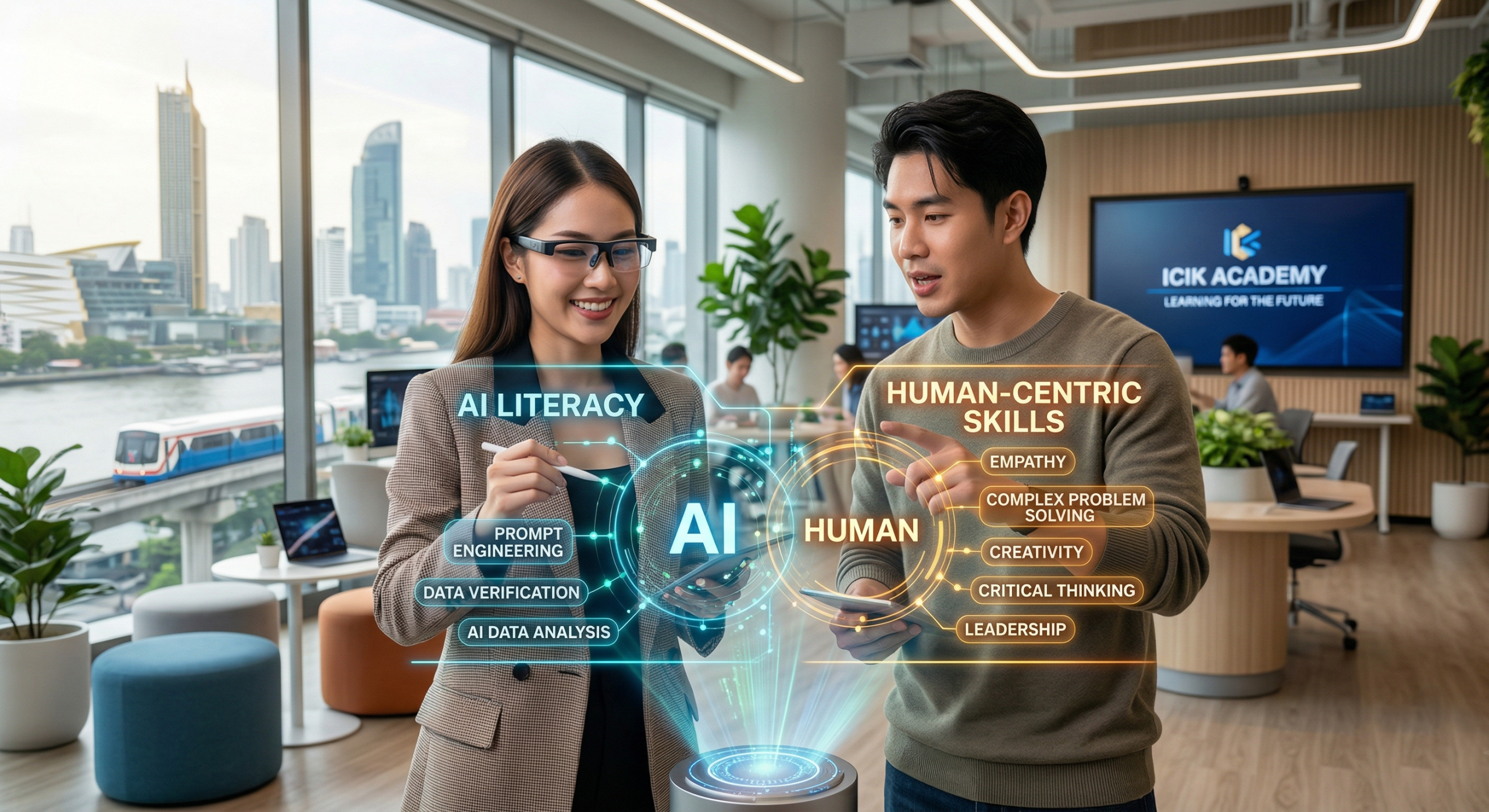 คำตอบไม่ได้อยู่ที่การแข่งกันเก่งเทคโนโลยีเพียงอย่างเดียว แต่อยู่ที่การรักษาสมดุลและผสมผสานทักษะ 2 ด้านเข้าด้วยกัน นั่นคือ AI Literacy และ Human-Centric Skills