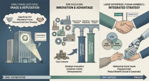 แต่ ผลการสำรวจข้อมูลการนำเอาเรื่อง CSV ไปสร้างสรรค์เป็นกลยุทธ์ธุรกิจในกิจการขนาดเล็ก โรงงาน และ SMEs จำนวน 294 แห่งในเกาหลีใต้ พบว่า มีพัฒนาการของการปรับมุมมองจาก Traditional CSR ไปสู่ CSV ตามบทบาทของ Strategic innovation-driven, customer-centric approach เปลี่ยนจากความกังวลเรื่องต้นทุนไปสู่ “การสร้างความได้เปรียบทางการแข่งขัน” (Competitive advantage) ควบคู่ไปกับ “การสร้างความได้เปรียบจากการจัดการความยั่งยืน” (Sustainable advantage) ตามมิติของการพัฒนางานในพื้นที่ต่าง ๆ ของการสร้างคุณค่า ทั้ง Reconceiving products and markets, redefining productivity in value chains, and supporting cluster development และ “การมุ่งเน้นความเป็นผู้ประกอบการ” (Entrepreneurial Oriented) (Seo et al., 2023)