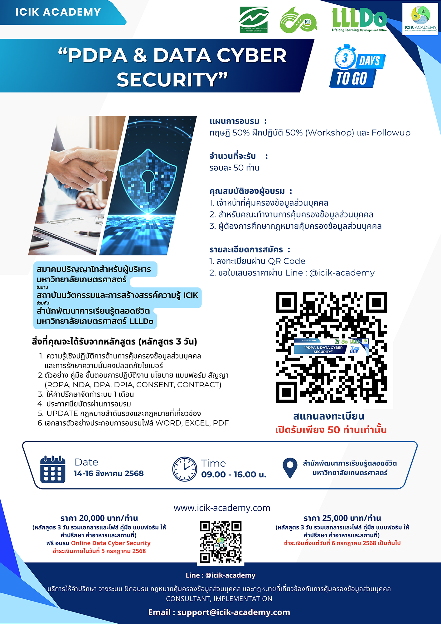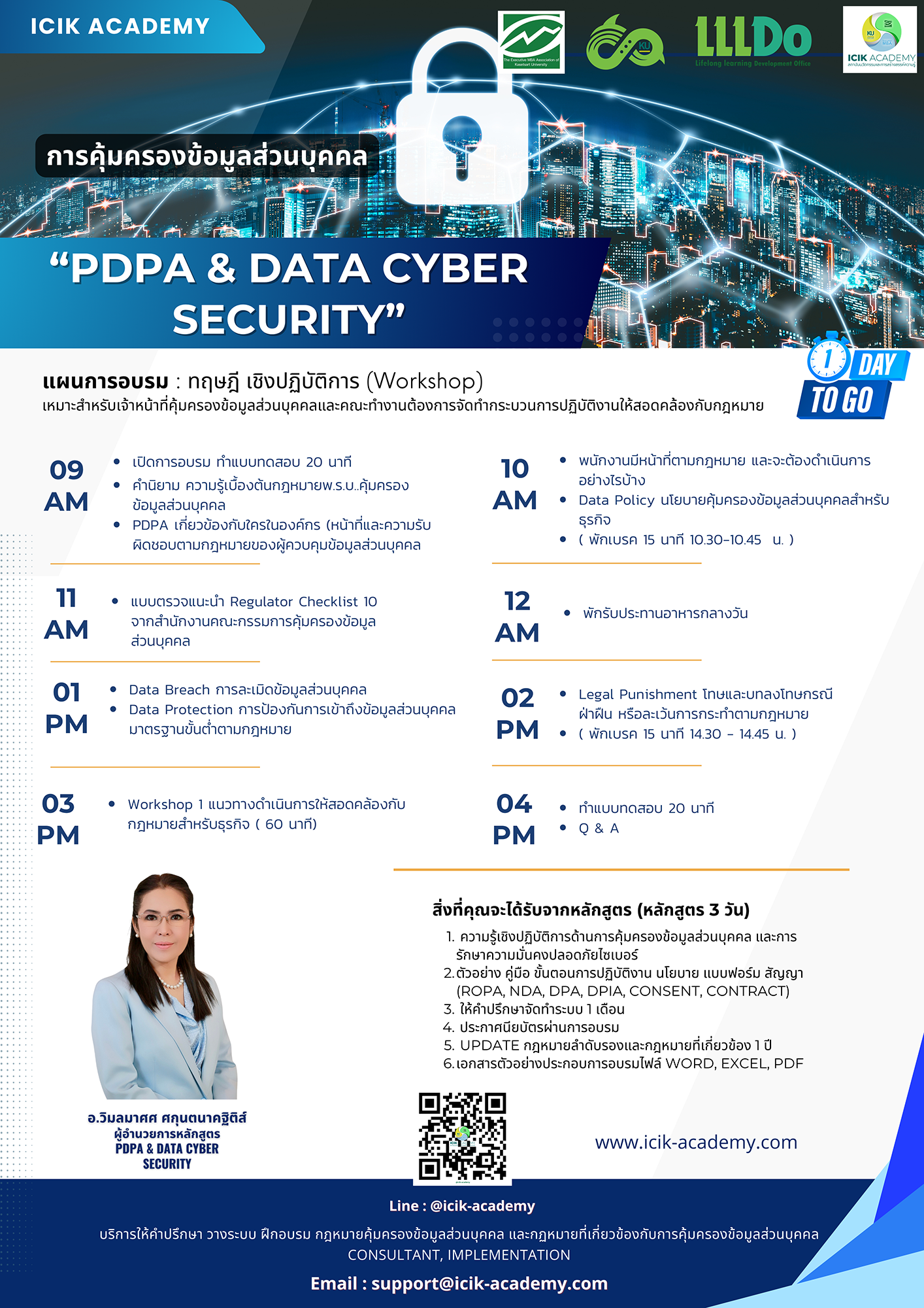 หลักสูตรฝึกอบรมเชิงปฏิบัติการด้านการคุ้มครองข้อมูลและการรักษาความมั่นคงปลอดภัยของข้อมูลส่วนบุคคลเพื่อให้ปฎิบัติให้สอดคล้องกับกฎหมาย